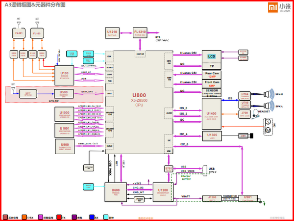 小米平板2电路原理图+位号图+元件分布图+逻辑框图